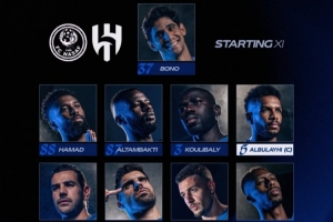 利雅得新月首发:37-布努、88-哈马德-亚米、87-坦巴蒂、3-库利巴利、5-布莱希、19-特奥、8-鲁本-内维斯、22-米林科维奇、28-卡努、99-哈姆丹、9-莱昂纳多
