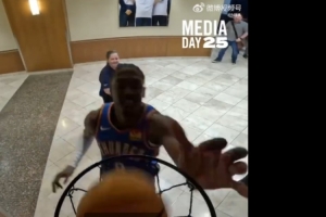 谁童年第一扣不是扣小篮筐?雷霆全队玩小篮筐 卡鲁索带头一顿玩