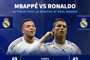 体育资讯10月8日讯 姆巴佩已为皇马效力16个月,德国转会市场统计了他与C罗在皇马同期的数据。