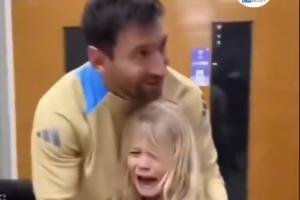一名小球迷见到梅西后激动落泪,梅西连忙安慰小球迷。