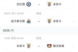 本菲卡首轮欧冠遭遇阿塞拜疆球队卡拉巴赫逆转。接下来本菲卡在欧冠会面对切尔西(穆帅前东家)、纽卡、勒沃库森、阿贾克斯、那不勒斯、尤文、皇马(穆帅前东家)。