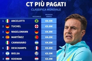 卡纳瓦罗 (意大利) → 执教 乌兹别克斯坦:400万欧元