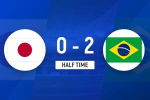 上半场比赛结束,日本0-2巴西。