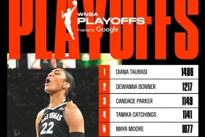 加上今天的38分,威尔逊季后赛生涯总得分来到937分,连超两人,升至WNBA季后赛历史得分榜第8位。