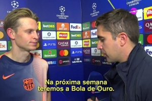 体育资讯9月19日讯 欧冠联赛阶段首轮比赛,巴萨客场2-1击败纽卡,巴萨中场德容赛后接受媒体的采访,被问到了队友竞争金球奖的话题。