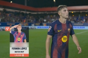 体育资讯9月15日讯 西甲第4轮,巴萨主场6-0击败瓦伦西亚,费尔明此役代表巴萨首发出战,打进2球。
