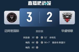 体育资讯09月21日讯 美职联一场比赛,迈阿密3-2击败华盛顿联,暂升东区第5名。