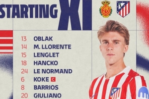 体育资讯9月21日讯 北京时间今晚22点15,西甲第5轮马竞客战马洛卡,马竞此役首发已公布。