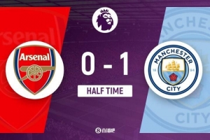 半场结束,阿森纳暂0-1曼城。