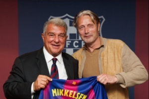 体育资讯9月22日讯 西甲第5轮比赛,巴萨在主场迎战赫塔费。本场比赛,丹麦著名演员麦斯-米科尔森现身包厢观战并获赠巴萨球衣。