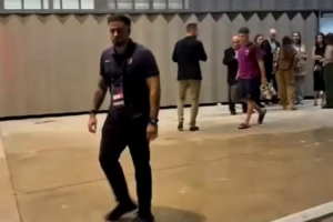 西班牙媒体《马卡报》晒出视频,费尔明离开球场时一瘸一拐,仍有身体不适的情况。