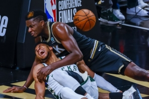 谈到在2021东部决赛中他曾受伤,他说:“我受伤后六天后就重新上场了。我没有恢复到100%,但我没有其他选择。就像我对瓦西利斯教练说的,他问我‘你疼吗,疼吗?’。我疼不疼不重要,我会出场打球的。这有什么关系?你们为什么总问我疼不疼?反正我都要上场。这一点都不重要。直到现在还有影响,四年过去了,我仍然能感觉到那次受伤。好吧。对于那些在家工作或在线观看的人,你们可以去回看那个时刻。我倒在地上,伤到了我的腿,我走回更衣室,萨纳西斯扶着我,因为我的膝盖反关节扭曲了。”