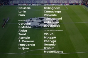 前锋:维尼修斯、姆巴佩、罗德里戈、贡萨洛-加西亚、卜拉欣-迪亚斯、马斯坦托诺