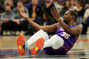 格林:“但对我来说这没那么有趣,因为他差不多了。KD都打了19年了,他是个七尺长人(注:约2米13)。一个七尺长人能打这么久,我觉得他差不多了,兄弟。”