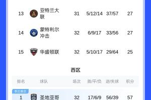 目前美职联东西区的总排名上,费城联63分第一,辛辛那提58分第二,圣地亚哥、温哥华白浪分列三四,纽约城和迈阿密国际56分排在五六位。